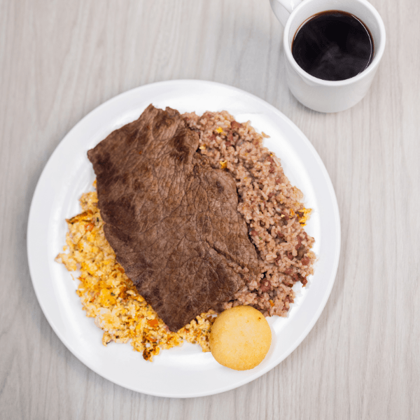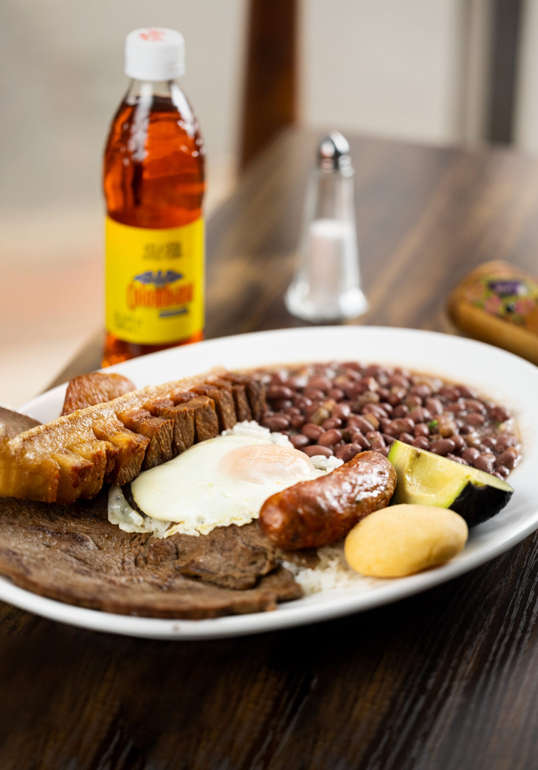 Our Bandeja Paisa is a true taste of Colombia, featuring a hearty platter of traditional favorites. Enjoy tender grilled steak, crispy pork belly, savory sausage, fried egg, arepa, rice, beans, and avocado, all perfectly complemented by a rich side of plantains.